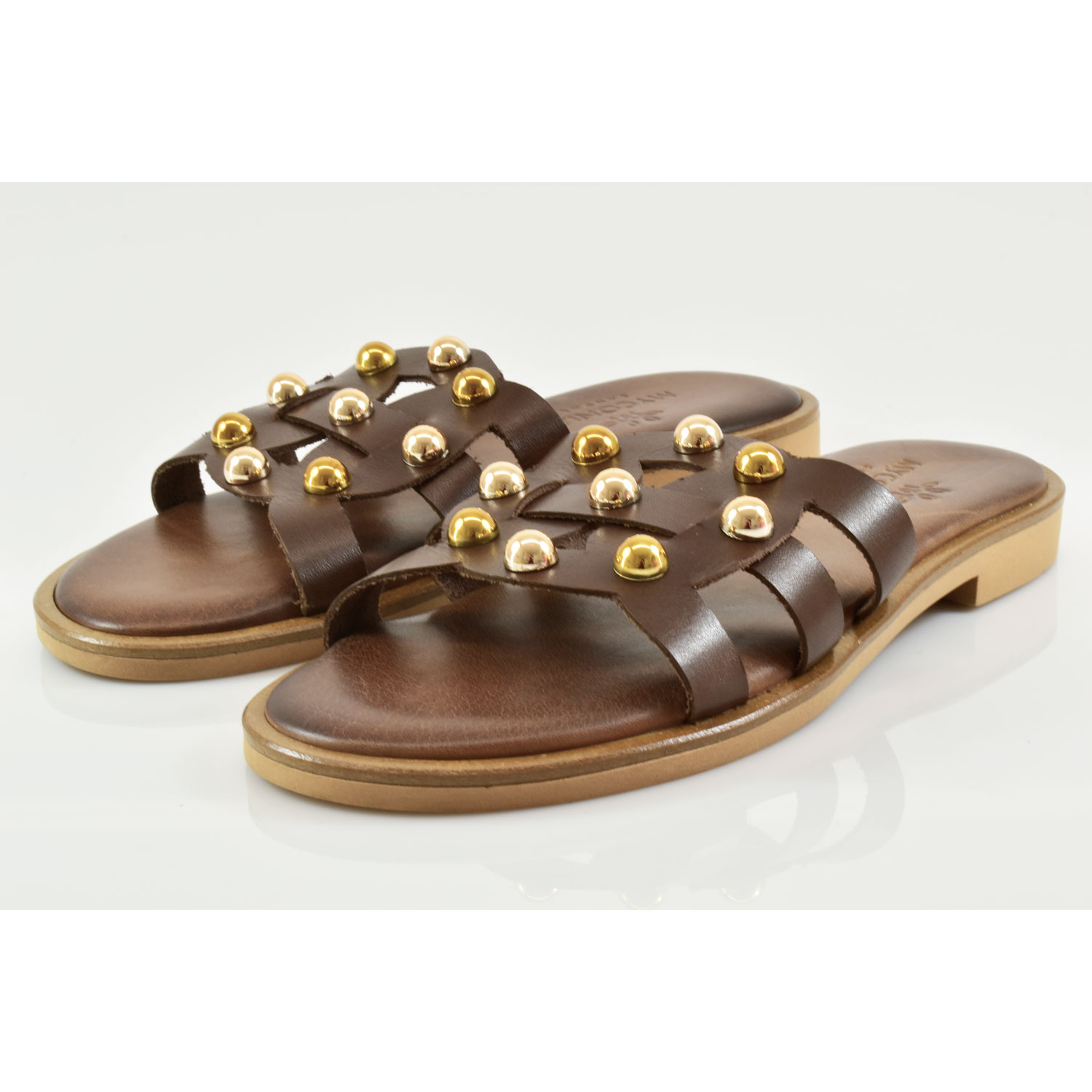 Γυναικείο φλατ παντοφλάκι δέρμα Myconian