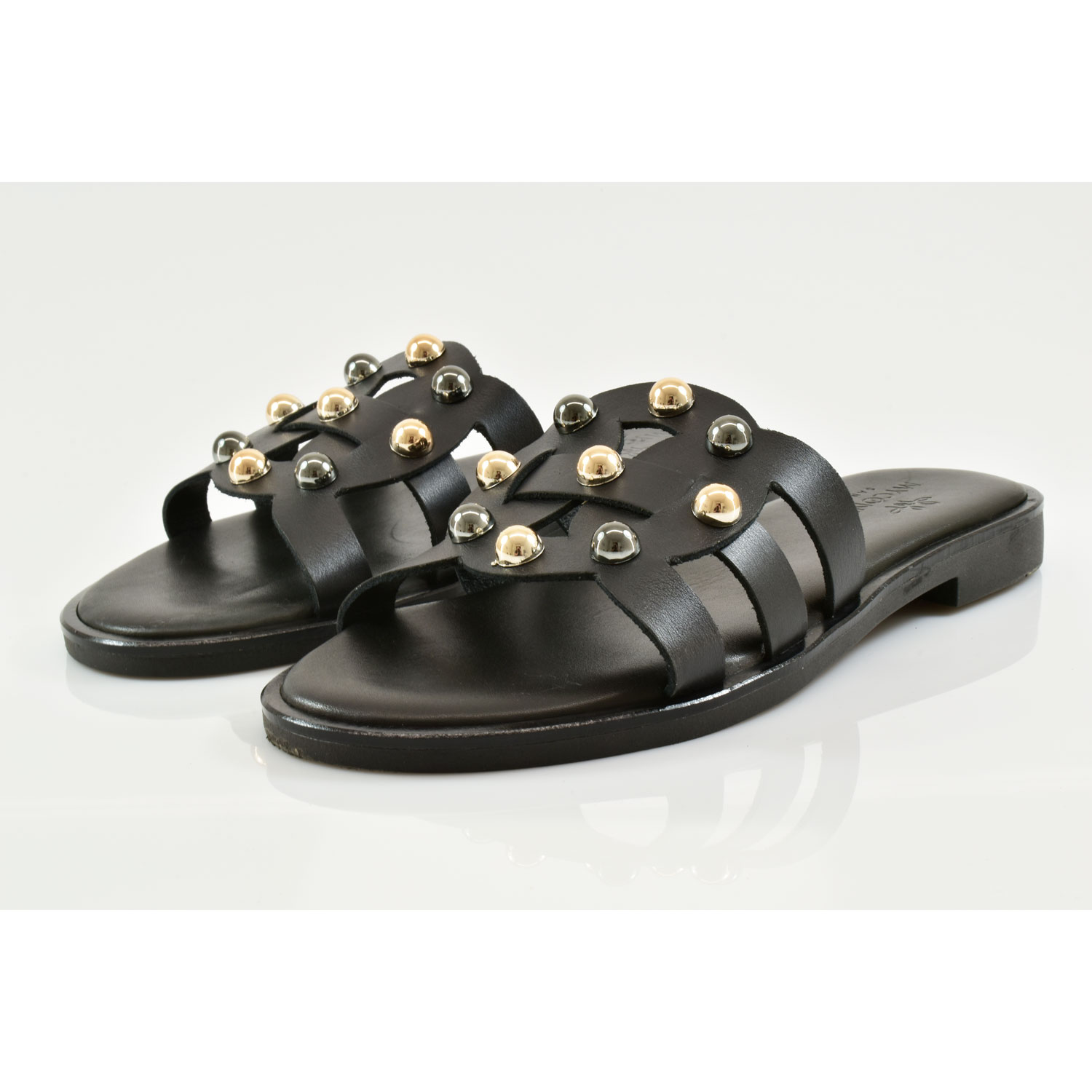 Γυναικείο φλατ παντοφλάκι δέρμα Myconian