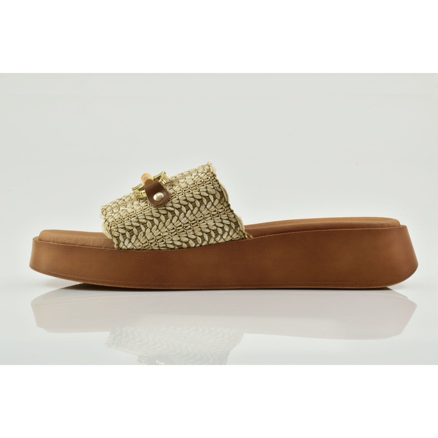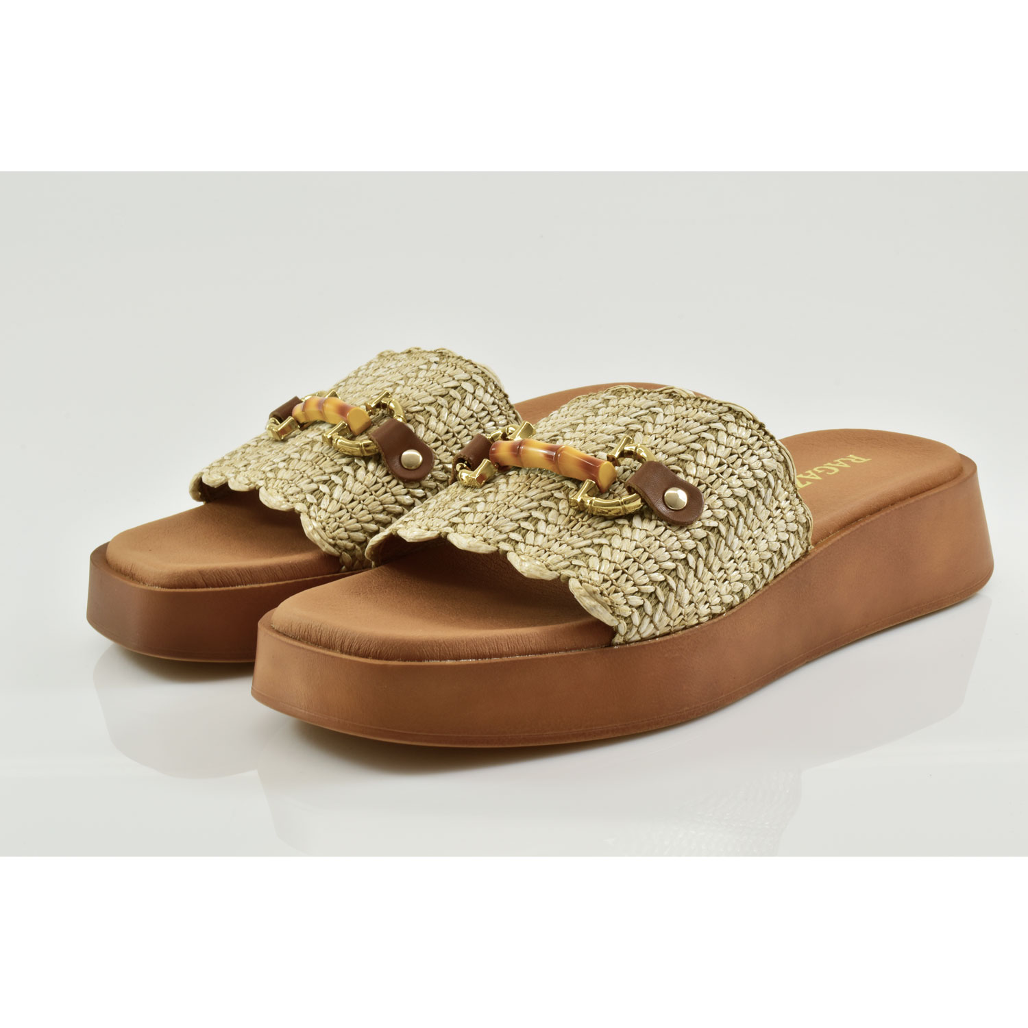 Γυναικεία παντόφλα φλατφορμ δέρμα/ψάθα Ragazza